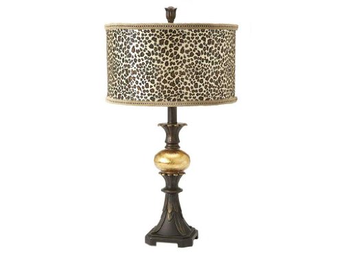 !±8±New Gold Ball Table Lamp With Animal Print Shade Ceramic Cent Drum Shde 14 X 14 X 24 Beautiful